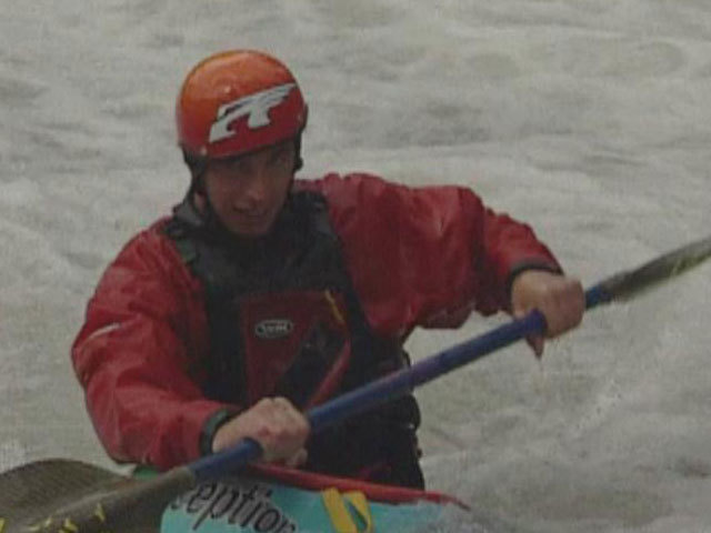 Байдарочник-одиночка справляется с течением.