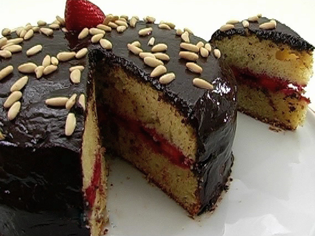 Всем сладкоежкам посвящается.Состав:масло — 1/4 стакана;молоко — 1/4 стакана;мука — 400 гр;сахар — 250 гр;яйца — 2 штуки;цедра одного лимона;дрожжи — 30 гр;корица — 1 столовая ложка;шоколадная глазурь — 150 гр;клубника — 5 штук;джем — 100 гр;сливки — 100 гр;кедровые орешки для украшения. Язык: Русский