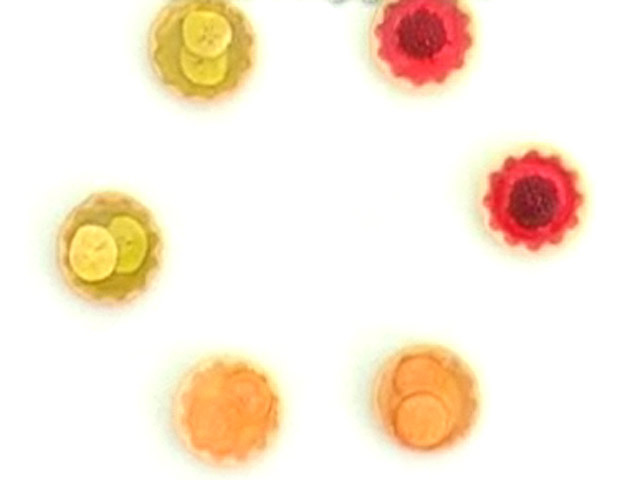 Рецепт тарталеток с желе.Состав: тарталетки — 6 штук;банан — 1 штука;физалисы — 4 ягоды;малина — 2 ягоды;желатин киви, желатин малиновый, желатин ананасовый, вода. Язык: Русский