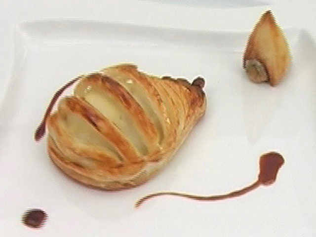 Необычное использование обычной груши.Состав:груша — 1 штука;сыр — 30 гр;грецкие орехи — 10 гр;хлеб — 1 кусочек;яйцо — 1 штука;сахар — 1 столовая ложка;слоеное тесто — 1 порция. Язык: Русский