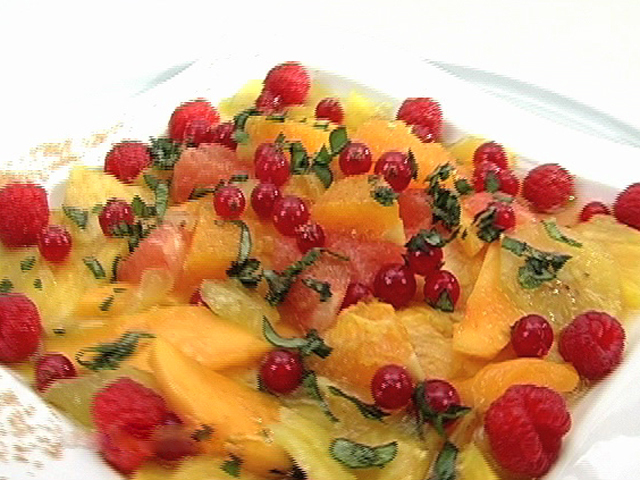 <p>Фруктовый салат с утра поднимет настроение на целый день.Состав:Малина — 30 гр;киви — 1 штука;апельсин — 1/2;грепфрут — 1/2;ананас — 1 долька;красная смородина — 30 гр;манго — 1/2;немного свежего базилика;оливково-лимонное масло, тросниковый сахар — по вкусу.</p> Язык: Русский