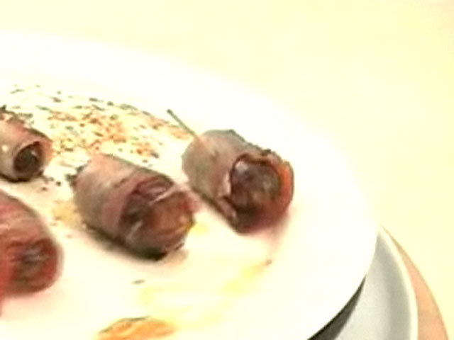 Необычный рецепт приготовления бекона.Состав: финики — 15 штук;бекон — 7 кусочков;мед. Язык: Русский