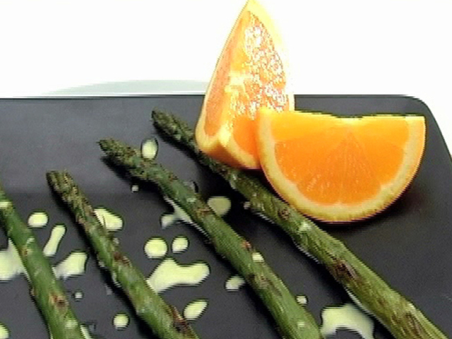 Научитесь готовить спаржу!Состав:спаржа — 6 штук;сок одного апельсина;яйцо — 1 штука;лимонный сок — 1 столовая ложка;сливки — 1 столовая ложка;оливковое масло, сельдерей, соль — по вкусу. Язык: Русский
