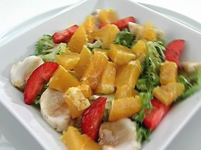 Салат из морского ангела с необычной заправкой.Состав:морской ангел — 100 гр;апельсин — 1 штука;клубника — 1 штука;несколько листьев салата;бальзамический уксус, оливковое масло, соль — по вкусу. Язык: Русский