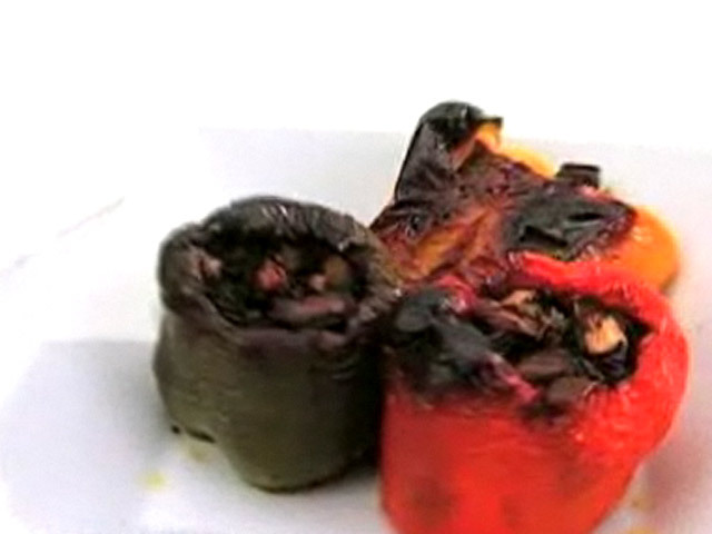 Вкусное блюдо из Италии.На 3 порции:перец — 3 штуки;дикий рис — 1/2 чашки;зеленый лук — 1 пучок;баклажаны — 3 штуки;оливковое масло, черный перец, лимонный сок, соль. Язык: Русский