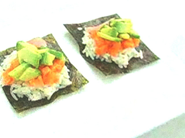 Рецепт суши с авокадо.Состав:нори — 3 листа;рис — 70 гр;сок одного лимона;оливковое масло — 2 столовых ложки;сахар — 2 столовых ложки;авокадо — 1/4;морковь — 1 штука;розовая вода, имбирь, соль. Язык: Русский