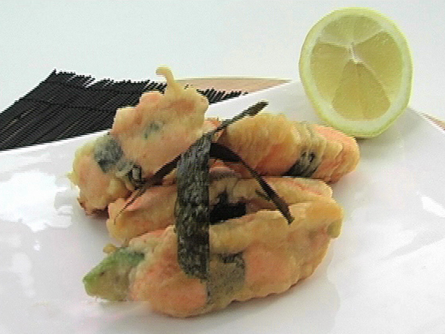Филе лосося в нежном сливочном соусе.Состав:лосось — 250 гр;картофельная мука — 2 столовых ложки;зеленый лук — 2 чайных ложки;оливковое масло — 50 гр;яйцо — 1 штука;сливочный сыр — 1 столовая ложка;авокадо — 1/4 штуки;нори — 1 лист. Язык: Русский