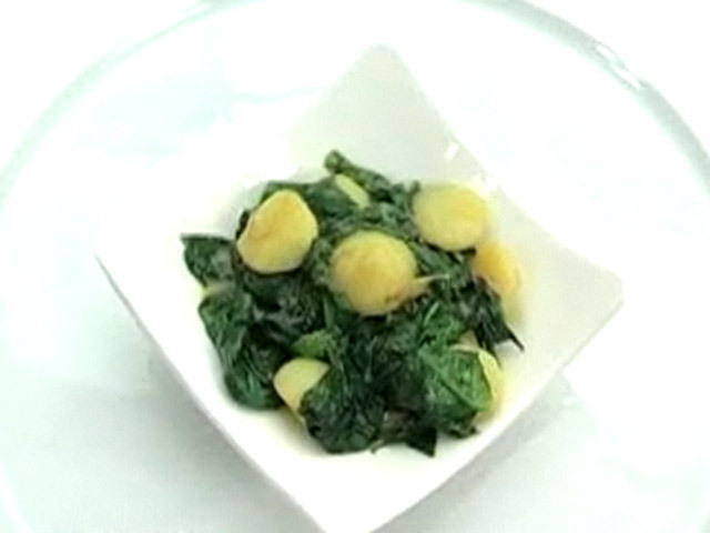 Рецепт вкусного блюда из картофеля.Состав:картофель — 1 штука;шпинат — 90 гр;овощной бульон — 2 стакана;чеснок — 3 зубчика;оливковое масло, чили. Язык: Русский