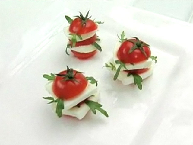 Рецепт салата с моцареллой и соус с руколой.Состав:бальзамический соус — 1 столовая ложка;черри — 3 штуки;руккола — 15 гр;моцарелла — 70 гр;оливковое масло, соль. Язык: Русский